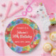 Flores acuáticas divertidas, brillantes y multicolores pintadas por Suki. Flores grandes decoran el guión de cumpleaños del guión de la brocha de fondo para la palabra Cumpleaños. Personalizar y personalízate con los detalles de la fiesta de cumpleaños y hurra! disfruta del fiesta!