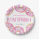 Plato De Papel Acuarela Rasplante rosa Donuts Bebé Sprinkle