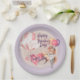 Este plato fiesta El día de San Valentín personalizado presenta un tema de color zorro adorable y romántico. Dos locos zorros de amor son retratados besándose en la parte inferior derecha. Un lindo conejito flota en un globo de aire caliente. Un nombre personalizado se imprime sobre un corazón rosado en la parte inferior izquierda sobre un fondo polvoriento de lavanda morada.