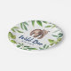 Estos elegantes platos para fiestas de cumpleaños incluyen un oso y hojas marrones pintados de color acuático, junto con una tipografía elegante, que dice "Wild One". ¡Simplemente personalizar con el nombre de su hijo! El color de fondo y el color del texto se pueden personalizar, si se desea (se muestran en blanco y azul).