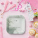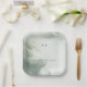 Este elegante plato de boda presenta un diseño minimalista con un fondo de acuarela suave en tonos verdes suaves y silenciados. La composición es limpia y moderna, con un amplio espacio negativo que destaca la tipografía refinada. Perfecto para ocasiones formales, este plato combina sofisticación y simplicidad, lo que lo convierte en una opción ideal para celebrar momentos especiales como bodas.