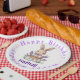¡Celebra con estilo este encantador papel y placa Fiesta con temática de conejito! Con elegantes fuentes negras y violetas en la parte delantera, es perfecto para una fiesta mágica y divertida de cumpleaños.