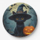 Plato De Papel Adorable Gorra de la bruja del gato negro