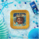 💙 Este encantador principito con una nariz de botón tierno, mejillas rosadas y pelo marrón rizado está alcanzando su pico por debajo de una corona dorada regal adornada con brillantes joyas azules. Está enclavado en una lujosa cuna de lavabo de oro, con una suntuosa manta azul para bebé. Fondo brillante de oro 💙 Hazlo verdaderamente especial personalizándolo con el nombre de tu bebé o un mensaje de personalizado 💙 Ideal para el príncipe real ducha de bebé o decoración de fiestas de cumpleaños temáticas reales