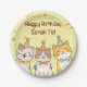 Plato De Papel Adorable Trio of Birthday Cats | Custom Name & Age