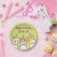 Celebrate your little one's special day with this charming, customizable paper plate! Featuring three cute cartoon kittens wearing colorful party hats and festive bow ties, this design is perfect for a cat-themed birthday party. The soft blue background is accented with bright confetti, making it a delightful addition to any first birthday celebration. Easily personalize the text with your child's name and age for a truly unique party experience.