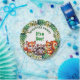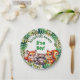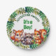 La aventura espera. Es un plato de papel de bebé de Boy con el tema de las criaturas de Woodland con racco lindo, ardilla y zorro en un lindo estilo personalizado rodeado de bosques mágicos y follaje de helecho.