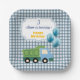 Aesthetic Gingham Blue Construction 3rd Birthday Paper Plate