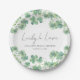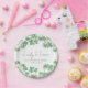 Plato de fiesta de despedida de soltera del Día de San Patricio Lucky in Love. Celebre a la futura novia con este diseño festivo y encantador, perfecto para una fiesta de despedida de soltera del Día de San Patricio. El plato presenta tréboles o shamrocks de acuarela vibrantes que adornan la parte superior e inferior en una mezcla de tonos verdes frescos, enmarcando el texto en el centro para un toque animado y elegante.