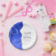 Estos elegantes platos bodas modernos presentan un diseño de acuarela azul real adornado con un falso purpurina dorado. Personalizar fácilmente el texto gris carbón en un fondo blanco, con los nombres de la novia y el novio en caligrafía de escritura a mano sobre una gran pandilla azul pálido.