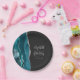 These elegant modern wedding plates feature a teal watercolor design trimmed with faux silver glitter. Easily customize the silver gray text on a dark off-black background, with the names of the bride and groom in handwriting calligraphy over a large ampersand.