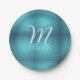 Plato De Papel Agate verde azulado turquesa aqua monograma añadir