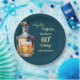 A modern birthday party design with bold numbers, a bottle of whiskey and a glass of whiskey. Customize the details for a chic birthday celebration.