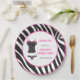 Platos de papel de agradecimiento para ducha de novia de lencería rosa caliente traviesa o agradable con fondo de estampado de cebra. Una forma ideal de impresionar a sus invitados cuando les entrega esos bocadillos y agradecerles por asistir a su función. El texto se puede cambiar para adaptarse a sus propias necesidades.