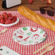 Un alegre patrón navideño rojo y verde que presenta iconos festivos adorables como Santa, muñecos de nieve, velas, campanas, acebo y decoraciones festivas. Este divertido estilo dibujado a mano añade un toque alegre de temporada a tus celebraciones navideñas. Perfecto para fiestas, cenas y reuniones navideñas.