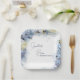 Personalice este bonito Algo Azul antes de hacer Hydrangea Watercolor Bridal Ducha Placas de papel para uso en su fiesta de jardín de verano o ducha de boda. Estos elegantes platos personalizados de flores desechables presentan una fotografía floral de acuarela digital pintada de pétalos de flores de hidrato azul claro con un fondo blanco.