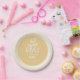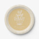 Un plato de papel lindo para la fiesta de cumpleaños "un conejo". Tipografía blanca con acento de oído conejito. Borde de patrón de ondulación dibujado a mano en amarillo polvoriento.