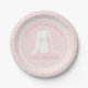Un Bunny Special está en camino! Cuencos y platos de papel de papel de gingham rosa primavera.