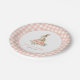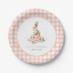 Añade un toque final a la decoración de tu pequeña fiesta de cumpleaños con estos platos de papel, con flores color de agua rosa y conejo sobre un fondo de guijarros de gingham rosa.