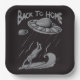 alienígena ufo surfeando ilustracion con letras de regreso a casa en blanco y negro