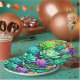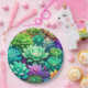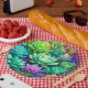 Arte de IA que representa plantas suculentas verdes, moradas, naranjas y azules como arte.