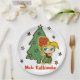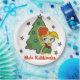 En este personalizado original, lindos pequeños chicas hula llevan su espíritu Aloha a las fiestas mientras bailan frente a un árbol de Navidad. El saludo es "Mele Kalikimaka" que significa Feliz Navidad en Hawaiano. Este diseño está disponible en una variedad de productos para el hogar y ropa para toda la familia.