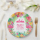 Cuenta con flores de hibiscos tropicales brillantes, flamencos rosados y está personalizado con su información. Perfecto para cumpleaños, graduaciones, duchas y más! El texto puede editarse o eliminarse según se desee. Artículos de fiesta e invitaciones coincidentes disponibles en mi tienda. Diseño ©Rosalind Moore, Diseños de las Lanes de cerezo.
