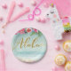 Plato De Papel ALOHA Oro Tropical Playa Flores de Hibisco Floral