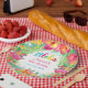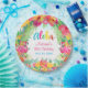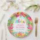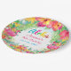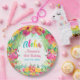 Este divertido plato Aloha luau de cumpleaños incluye flores tropicales brillantes, flamencos y su información. Artículos de fiesta que coinciden disponibles en mi tienda. Diseño ©Rosalind Moore, Diseños de los carriles de cerezo