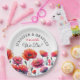 Hermosas amapolas rojas pintadas al óleo con el sol iluminándolas. Tonos rojos y verdes. Platos de papel personalizados para la cena de ensayo, recepción de boda o ducha de novia.