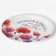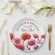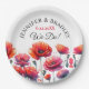 Hermosas amapolas rojas pintadas al óleo con el sol iluminándolas. Tonos rojos y verdes. Platos de papel personalizados para la cena de ensayo, recepción de boda o ducha de novia.