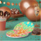 Estos coloridos platos de papel fractal tienen colores brillantes y vibrantes como amarillo, naranja, rosa, verde y verde azulado. Estas placas de papel se pueden usar para fiestas de cumpleaños, celebraciones y otros eventos especiales. Puede elegir el tamaño de las placas de papel antes de comprar. Compruebe si hay gorras fiestas, tazas de papel y servilletas disponibles para este diseño específico que coincidan con las placas de papel.