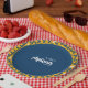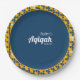 Esta placa de papel es un complemento para celebrar el nacimiento de un bebé de manera islámica según sunnah Rasulullah. Una serie de las colecciones SHRIMP-LY Cute presentan un estilizado patrón de camarón dibujado a mano. Pónganse en color amarillo, azul y blanco con texto de personalizable para el nombre del niño, fecha del evento, y el nombre del evento en sí puede cambiarse a ducha de bebé o dejarlo con la palabra aqiqah. Que Alá se dé la bendición y el barokah en tu familia en presencia de este bebé.