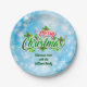 Plato De Papel Añadir nombre coincidente Feliz Navidad Azul 7"