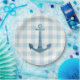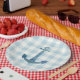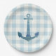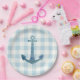 Plato De Papel Anchor Sailboat Nautical Blue Gingham Check