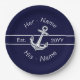 Plato De Papel Ancla náutica de boda personalizada azul marino