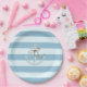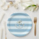 Plato De Papel Anclaje náutico adorable sobre franjas azules clar