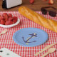 Un diseño divertido con un ancla azul con cuerda. El color de fondo se puede cambiar según se desee.