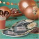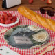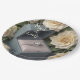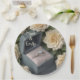 Estos platos de papel de compromiso boda cuentan con un anillo rodeado de flores. Los nombres se pueden cambiar o eliminar.