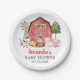 Agrega un toque personal a la celebración de tu baby shower con estos artículos de fiesta elegantes y memorables. El diseño presenta animales de granja (vaca, caballo, oveja, cerdo, gallo, gallina) y granero rojo sobre fondo blanco.