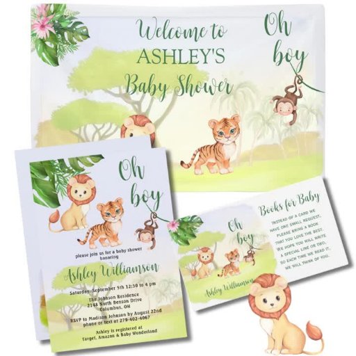JUNGLE SAFARI ANIMALS BABY BOY SHOWER Diseñado por Vivian Dye