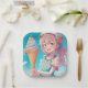 Placas de papel de fiesta de cumpleaños. Bonito púrpura y crema rosa de cono de anime zigzag arte caprichoso en violeta, rosa, azul y amarillo.