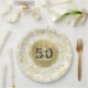 Plato De Papel Aniversario 50 Cumpleaños Confeti Glam Oro Blanco