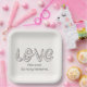 Texto de burbujas con diseño de flor de almendros en un fondo de marfil para un fiesta de aniversario. El texto es editable excepto para LOVE. Se puede cambiar el color de fondo.