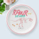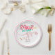 Este diseño de placas de papel para el cumpleaños de los chicas es bonito y moderno y cuenta con un esqueleto de dinosaurios t-Rex. Las placas pueden ser personalizadas con el nombre de sus hijos - la vajilla perfecta con tema de dinosaurio fosil dig rosa y brillante!