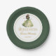 Adorna las mesas de Quinceañera con estos platos de papel personalizado. El diseño cuenta con un bonito chica en un vestido de estilo forestal con elementos botánicos y mariposas, que capta a la perfección una temática caprichosa. Personalice cada plato con el nombre y la fecha para crear una apariencia mágica y coordinada para su día especial. © Kimbellished, LLC