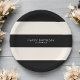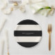 Un estilo clásico para una fiesta de cumpleaños u otra celebración especial, este diseño simple tiene un patrón de franjas horizontales en blanco negro y negro con cáscara de huevo. Se incluye una plantilla de texto para personalizar con el nombre del invitado de honor. Todo el texto se puede personalizar para que se adapte a tu evento o celebración. Estas placas de papel están disponibles en 2 tamaños: se muestran aquí en el tamaño de 7", también hay disponible un tamaño de 9".
