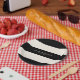 Plato De Papel Aniversario de las franjas blancas clásicas de neg