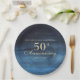 Elegante plato de papel azul marino con 50 años de boda. Personalizado con los nombres de las parejas, el aniversario que celebran y su fecha de aniversario. Comuníquese conmigo para obtener ayuda con sus personalizaciones o para solicitar productos adicionales de correspondencias o coordinación de Zazzle para sus eventos