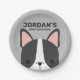 Este diseño presenta un bonito ilustracion personalizado de bulldog francés con un nombre personalizado en gris moderno sans serif estilo de fuente sobre fondo gris claro.